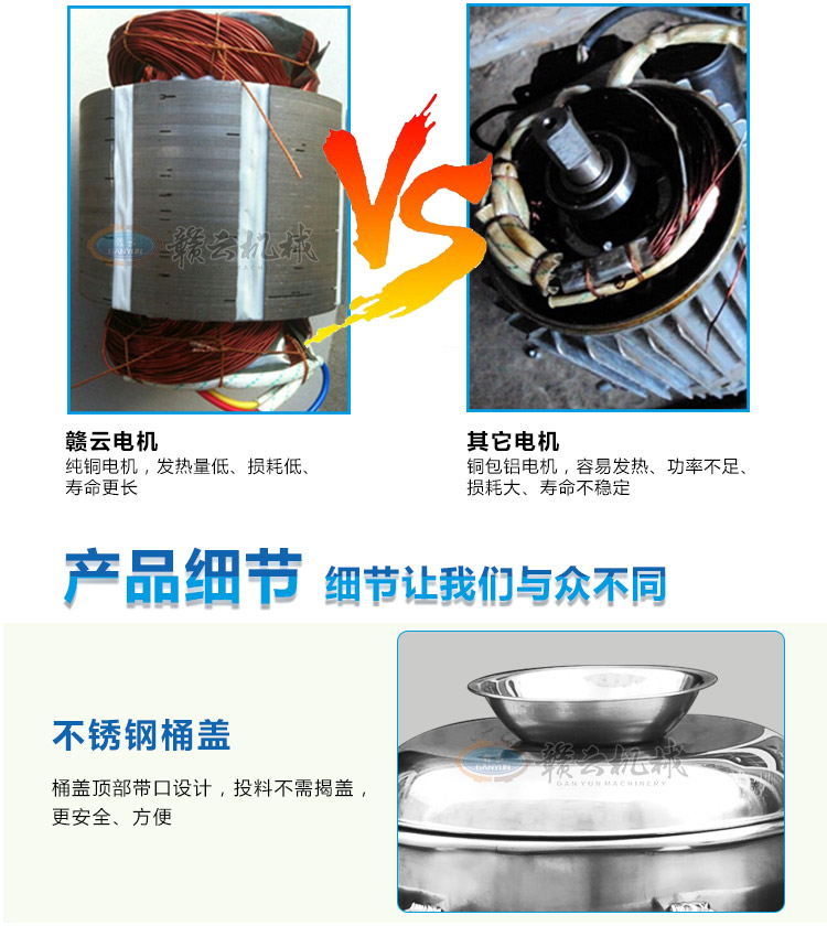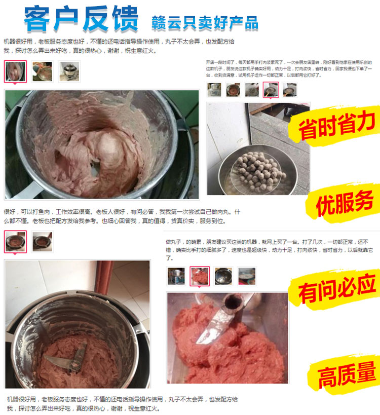 贛云牌全不銹鋼傳動高速肉丸打漿機,整機采用優質不銹鋼材質,拉伸桶底部弧形設計,贛云新款肉丸打漿機標志性設計。無縫焊接技術展現高檔品質。一次性可打肉漿5-6斤,2分鐘左右即可完成肉漿的制作。所打肉漿細膩,是肉丸專用打漿設備之一。