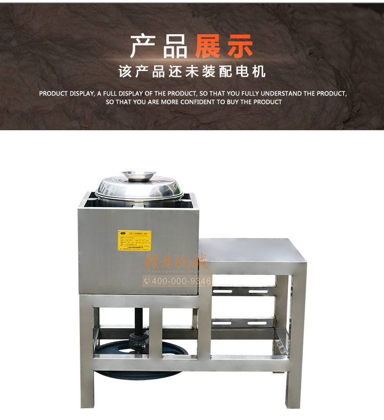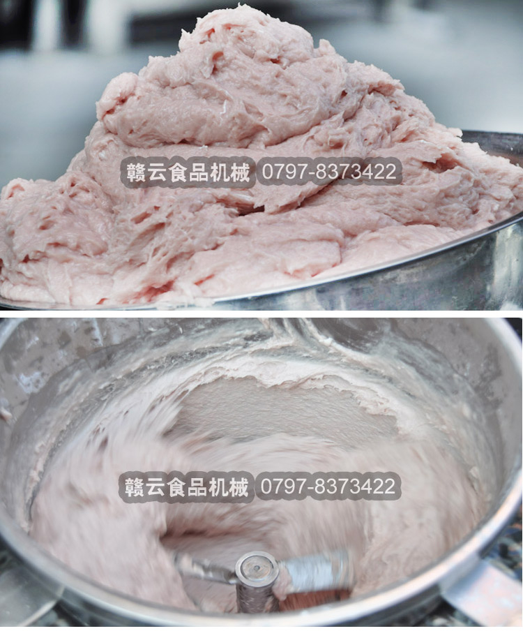 慢速肉丸打漿機有普通型和全不銹鋼型,本款為全不銹鋼系列32型慢速肉丸打漿機,打漿桶直徑320mm,一次可打肉漿15kg左右。通過大皮帶輪減速拍打肉漿,打出的肉漿更有彈性,適合魚丸、牛肉丸和貢丸的制漿之用。
