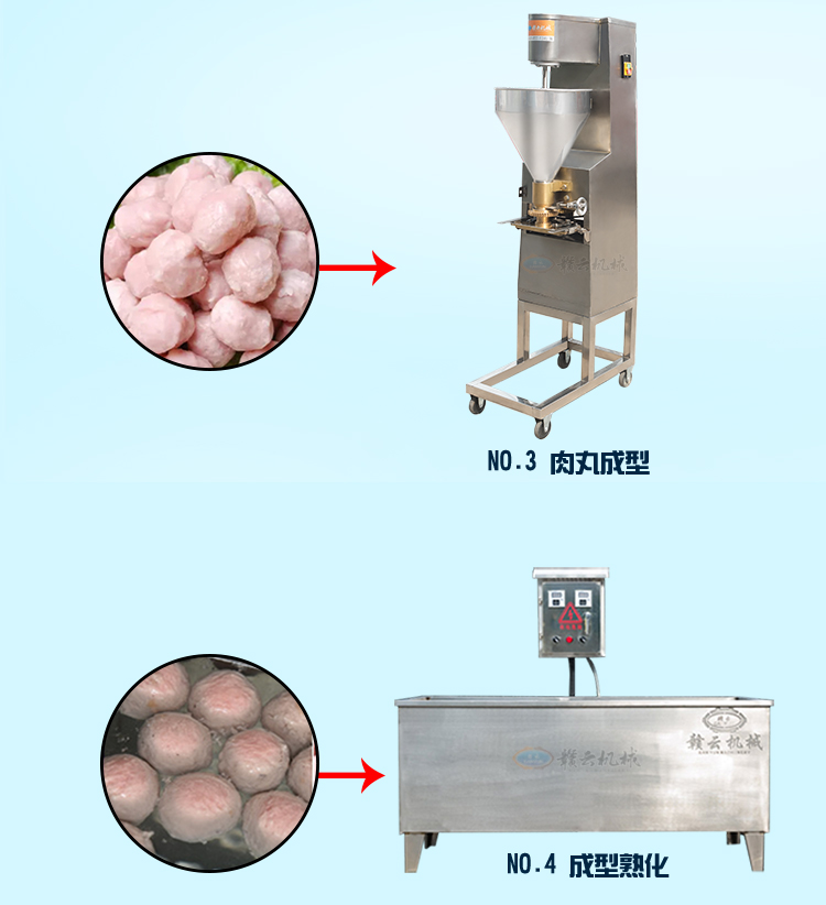 該套設備是生產500斤實心肉丸成套設備,一次性成本,持續收益,低門檻,高收益。3-4人人工生產肉丸,日產量200-300斤,效率低,速度慢。每月還需要支付昂貴的工資。而機器的日產量500斤,成型效果好,節約人工成本,一套機器可以用大概10年-20年。