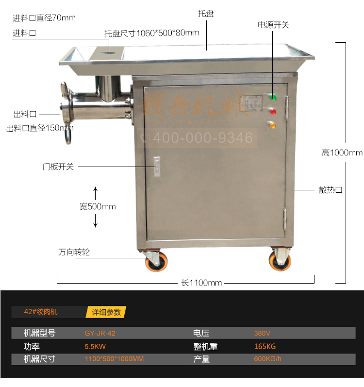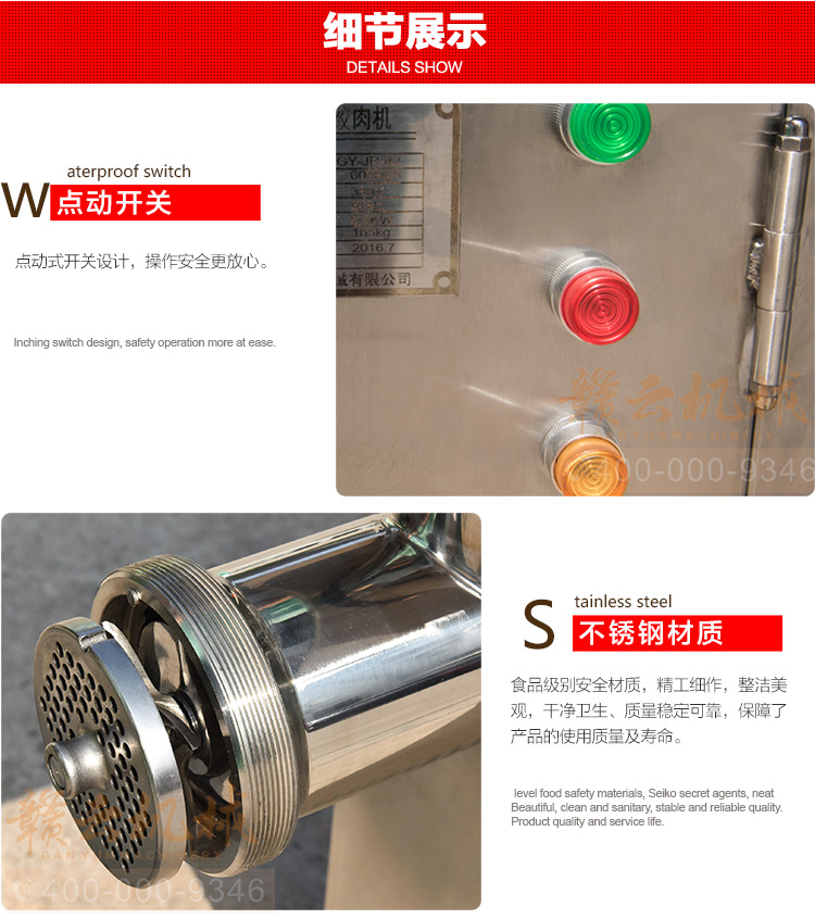 這款立式不銹鋼強力絞肉機,采用5.5kw大功率純銅電機,結合不銹鋼機身構架,精品絞龍,不銹鋼十字刀和圓刀,符合肉食品加工生產需求,整機結構緊湊,設備操作簡單,安全。