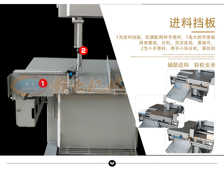 鋸骨機,鋸骨頭用什么,骨頭克星 大型立式商用鋸骨機,304不銹鋼制作,所用板材均為加厚不銹鋼,整機噴砂工藝,做工精湛。兩種推料切割方式,小塊切割和整板分割方式,可根據實際操作切換,使用過程中靈活度高,應用范圍廣。采用優質鋸條,鋸齒鋒利,耐磨韌性好,使用壽命長,輕松分解凍肉凍骨等高硬度食材,整機設計合理,鋸條與機身的拆卸簡單易懂,清洗方便徹底,在中央廚房,單位食堂、餐飲配送中心及肉聯廠等地應用廣泛。