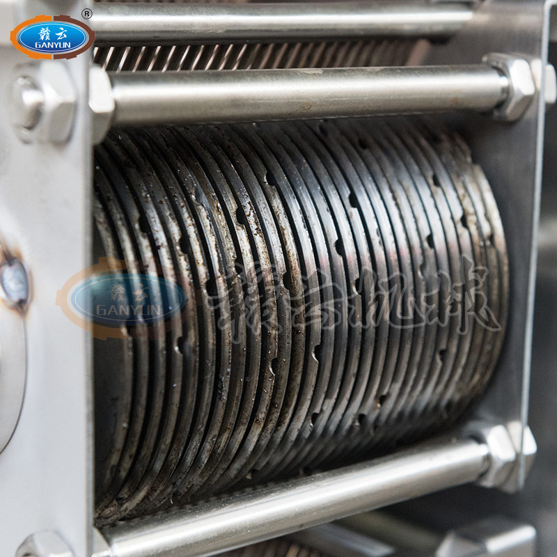 整機采用304不銹鋼板材封裝設計,板材標準1mm厚,刀片采用特質材質雙滾切刀,鋒利耐用,雙電機分別控制垂直刀組切割肉類,可一次成絲,可免工具拆卸清洗刀組,切肉速度快,力度強,切絲規格均勻
