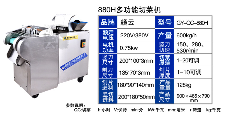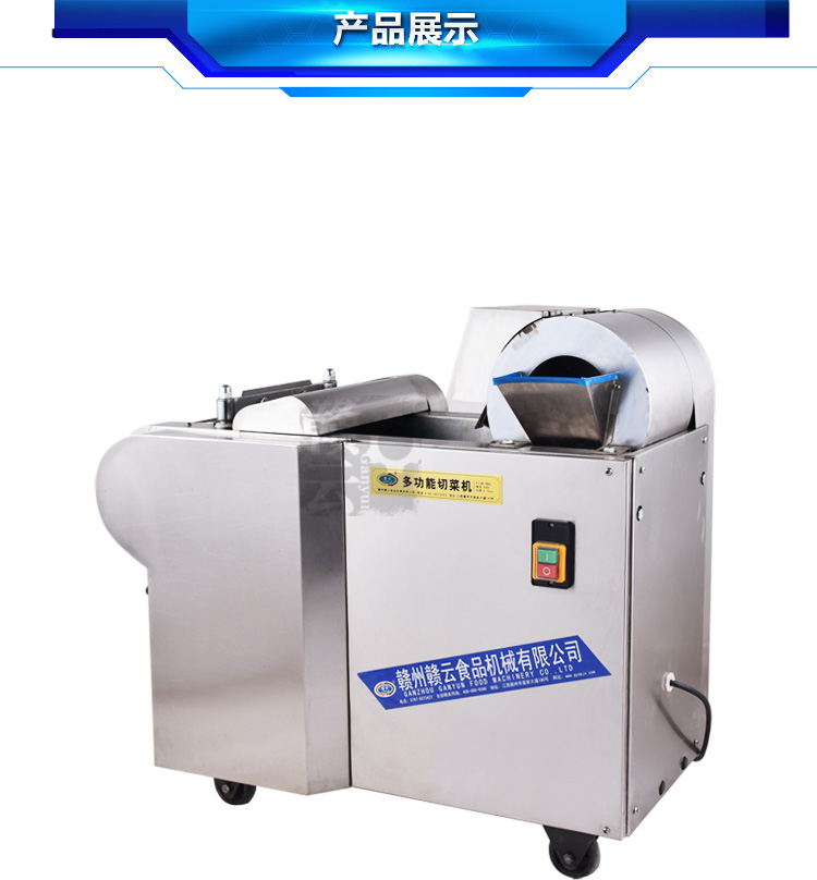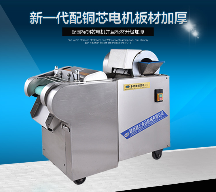2015年新款加厚型切菜機是我廠經過多年的切菜實踐經驗和客戶反饋等綜合信息考慮設計而成的,比原來的880型切菜機加厚板材,并配用全銅芯超穩定型電機。保證產品質量的同時,使得產品外形更加美觀,更顯不銹鋼檔次。一小時可切600公斤蔬菜,切菜厚薄可調0-20mm,切片厚薄可調0-10mm,模擬手工切菜原理設計而成,采用輸送帶完美配合離心切片機構和豎刀切菜機構,運用手壓原理將切切成有規則的,間隙均勻的片、丁、絲、條等狀。