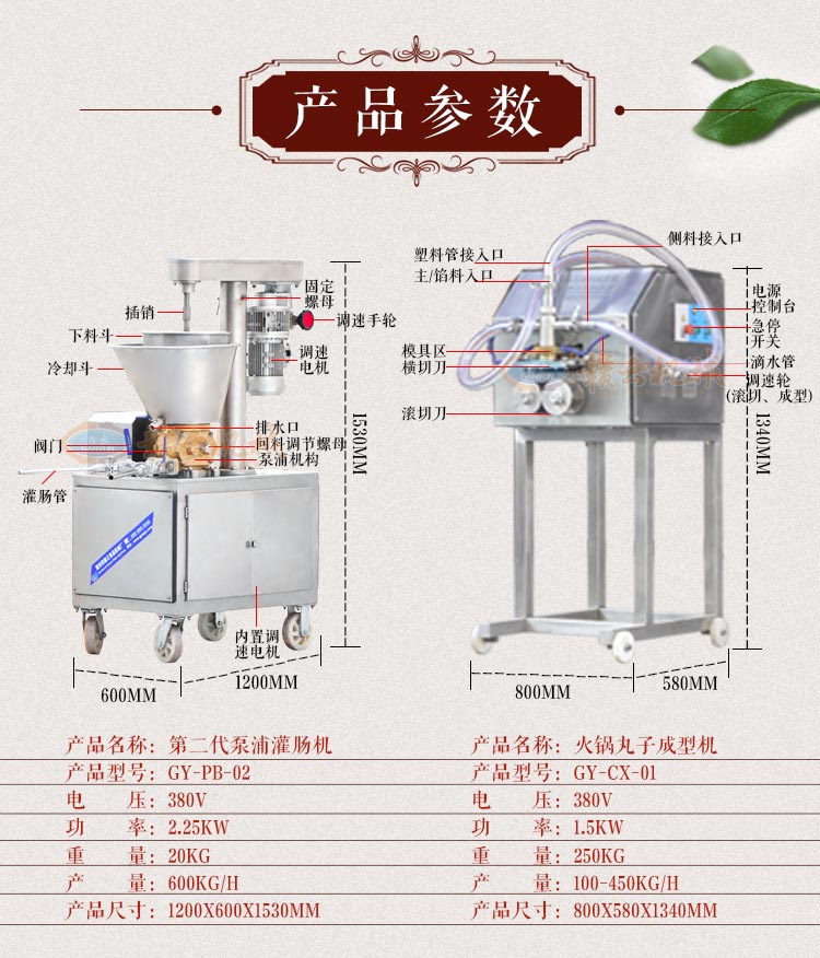 多功能火鍋料組合成型機組是由兩臺泵浦機和一臺火鍋料成型機組合而成,泵浦機起灌漿作用,火鍋料成型機起成型作用,本套成型機組可成型多種規格丸子,多種不同花色的丸子,又可稱為多樣丸子機,花樣丸子機,單色丸子機,多色丸子機等等。