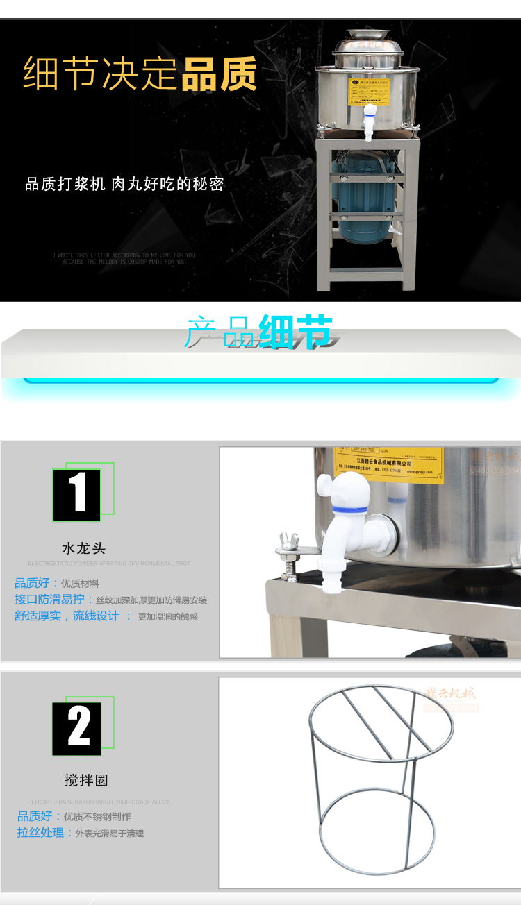 高速肉丸打漿機,做豬肉丸選贛云牌直立式高速肉丸打漿機系列,家用商用選打肉泥機,贛云全不銹鋼雙桶打漿機,采用新無縫焊接技術,弧形打漿桶,打漿效果更好,充分發揮機器的破碎,攪拌,高速的作用!配上贛云3.0kw大功率純銅國標電機,質量好的不得了。