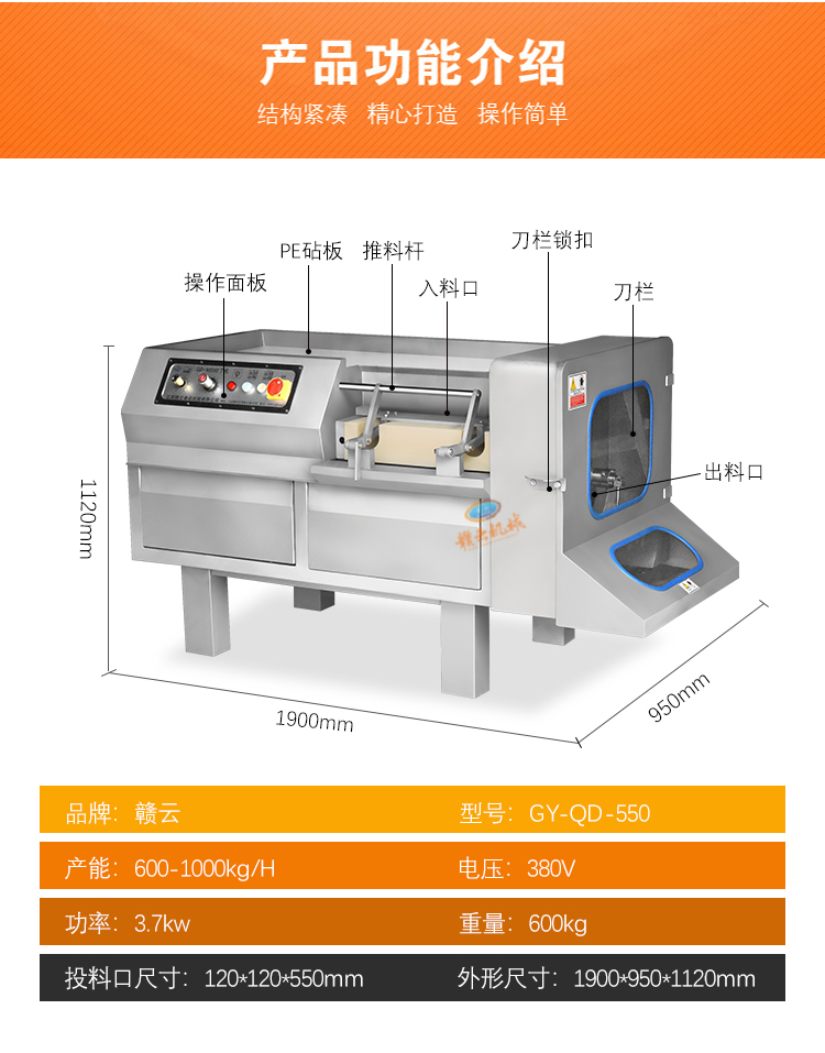 主頁-> 肉制品前處理->凍肉加工設備->550型家禽切肉丁機