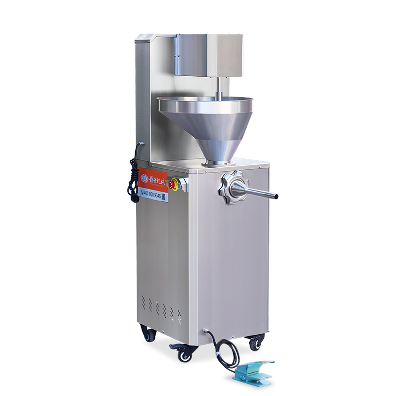 贛云牌立式全自動灌腸機,根據多次的機器實地使用和存在不足之處反復改造后的全新配置升級,采用不銹鋼機身,機頭使用可拆卸,方便機器清洗,速度平衡穩定,不銹鋼機身,腳踏控制灌腸,大功率電機,無論是四川香腸、湖南臘腸、脆皮腸、山東香腸、廣式臘腸還是河南臘腸都適用,一機多用,設備滿足多重風味香腸制作,新升級的機器加寬加大入料口,讓您進料順暢不卡料,灌腸機可以與多臺設備聯合使用,可與切片切絲機,拌餡機,灌腸機,香腸打結機組成,提高您的生產效率。