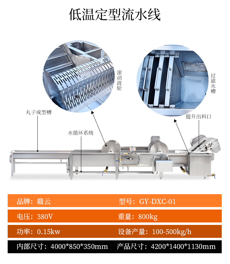 整套肉丸生產流水線設備自動化程度高,加工量大,非常適合食品加工廠,肉丸生產企業使用,我公司可以根據您的需求定制各種規格的機器設備。整條流水線可以生產肉丸,雞肉丸,墨魚丸,牛肉丸,魚丸等丸子,多功能加工設備。