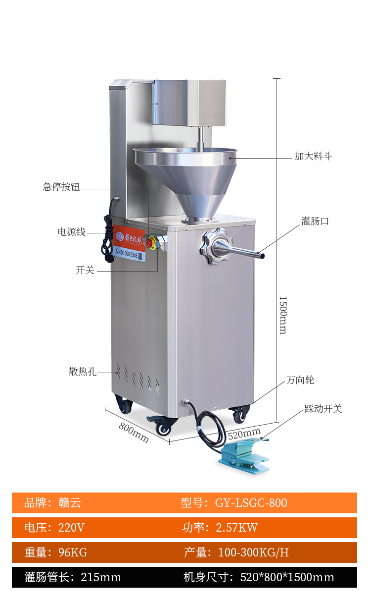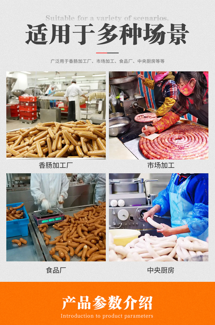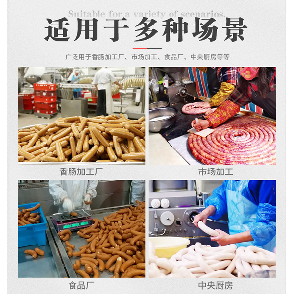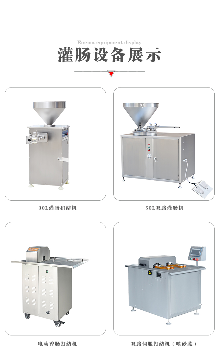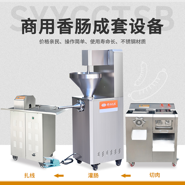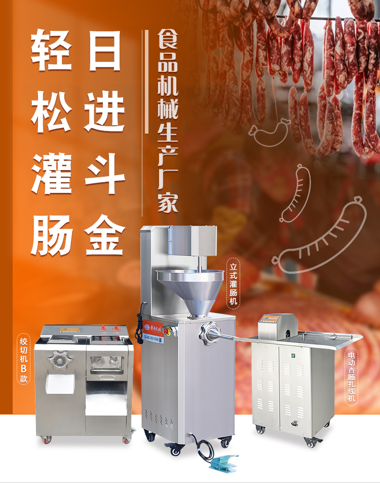 贛云機械專業從事肉類加工設備,灌香腸機械的研發和生產,專用于灌香腸的產品有香腸設備,火腿腸設備,成套香腸設備,整套香腸設備,灌腸加工設備,灌腸扎線機器等,這套設備滿足多種類型的香腸臘腸灌制