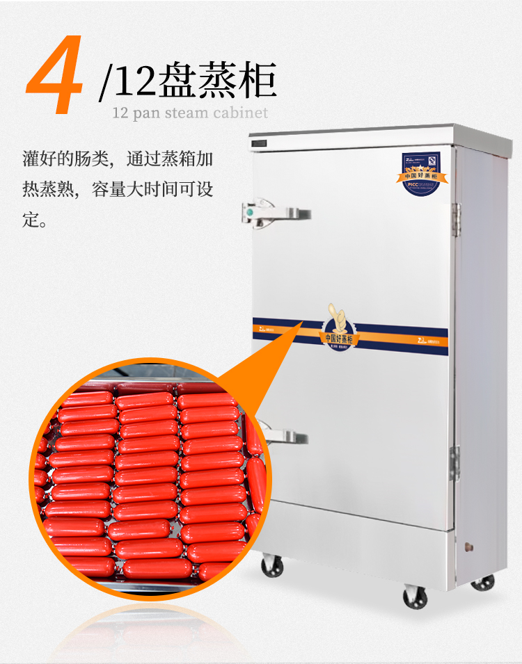 火腿腸原料的絞肉、打漿,火腿腸的灌腸打扣、蒸熟。