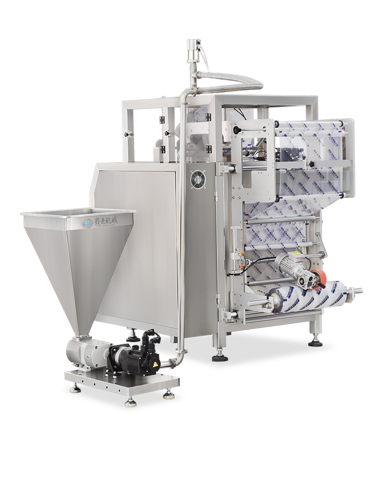 贛云420醬料包裝機適用于粘稠醬類、流體液體類的產品的灌裝和包裝設備。機器采用不銹鋼材質,保證物料的食品衛生,對物料進行定量稱重包裝。
