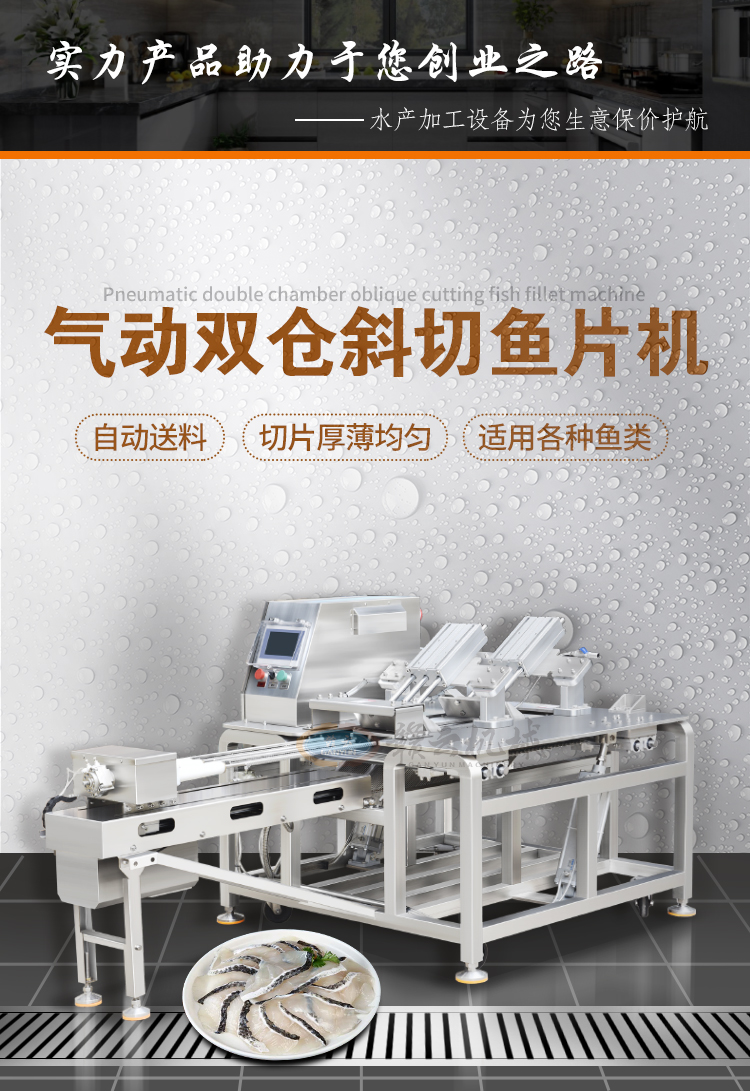主頁-> 水產加工設備->魚肉加工設備->氣動雙路斜切魚片機