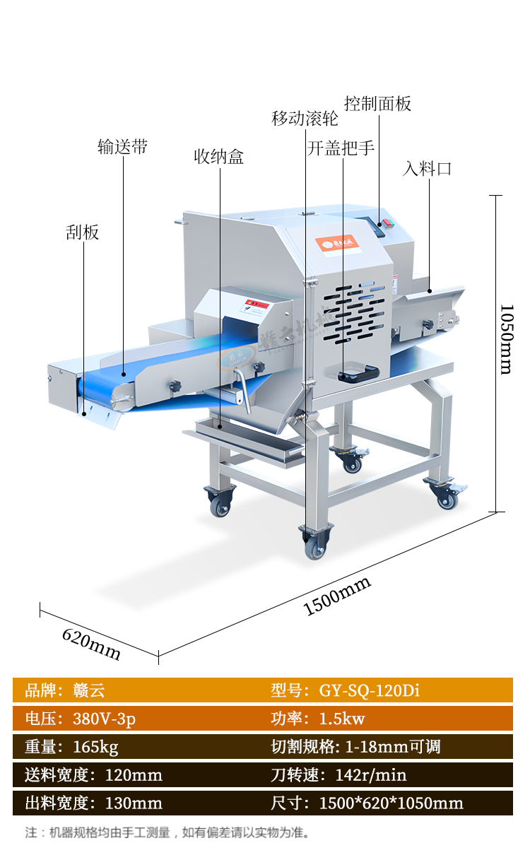 用于豬頭肉、臘肉、牛肉、扣肉、五花肉、火腿等快速切片切段,適應多種食材。