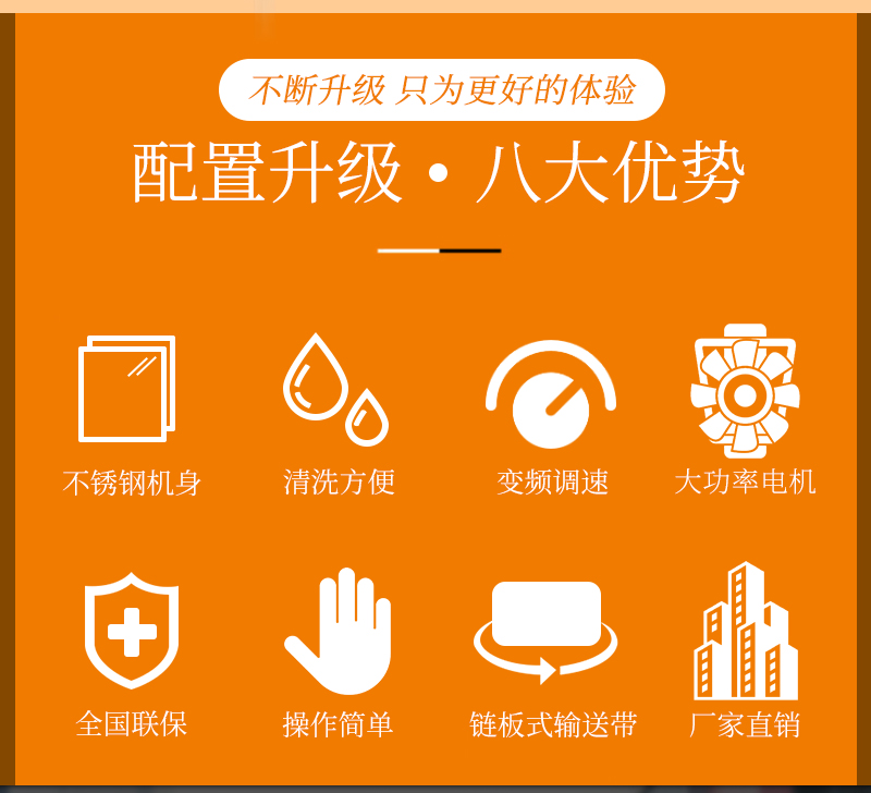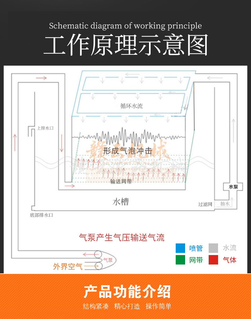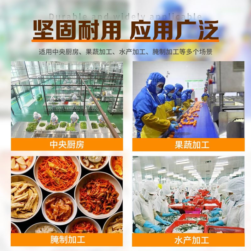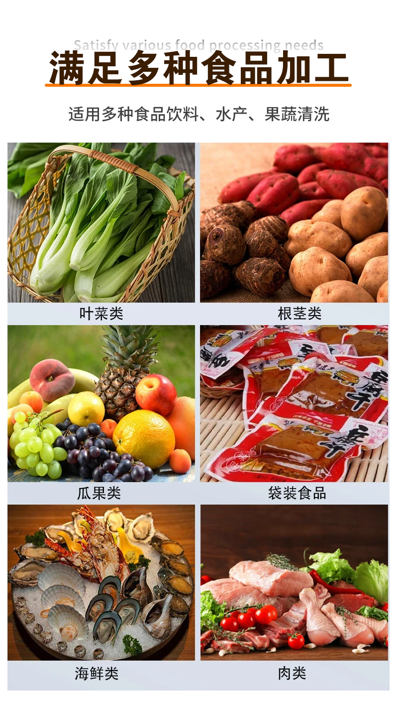 適用土豆、白菜、櫻桃、蘋果、蘿卜、魚、青菜、辣椒、香料、姜等水果蔬菜、水產品和其它各類食品的清洗。