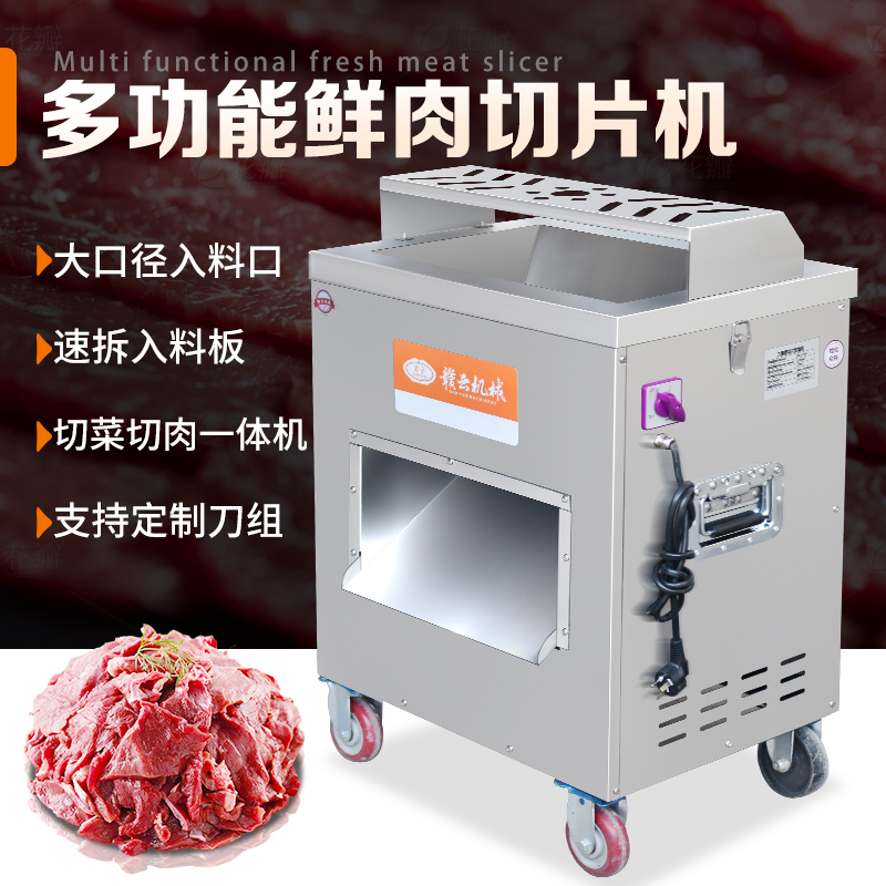 贛云工程款切肉機,可以切各種肉類,切片、切絲、切末一機搞定,也可以切軟蔬菜,例如:榨菜、魔芋、香菇、辣椒等,贛云新款切肉機配置新升級,使用優質大功率電機,采用不銹鋼機身,機器機身清洗方便,增加安全防護,加大了入料口,增加工作效率,新款商用切肉機一機多能,可以滿足多樣需求。