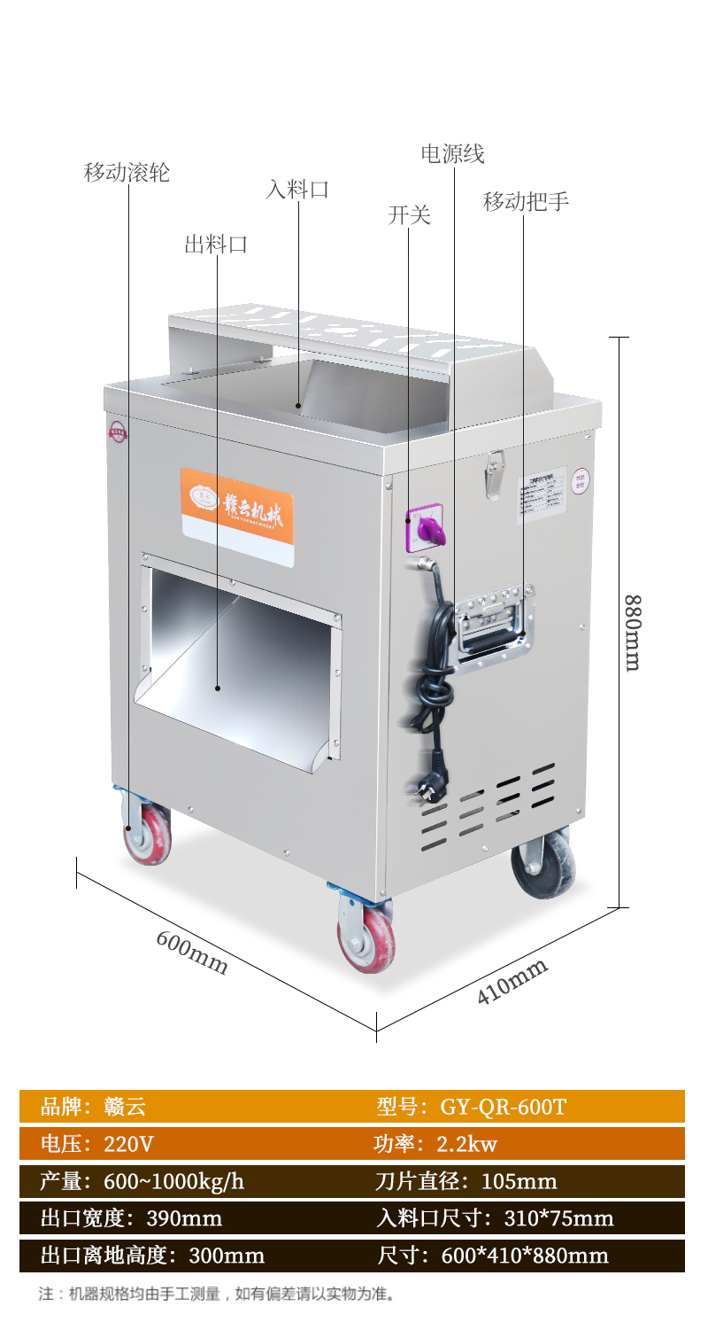 適用于鮮豬肉、牛肉、羊肉、魚肉、雞胸肉等各種肉類的切片、切絲、切末,也可以切軟蔬菜,如:榨菜、魔芋、香菇、辣椒等切片切絲切末。