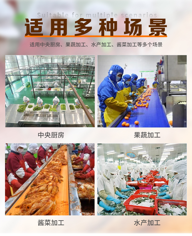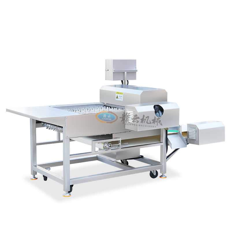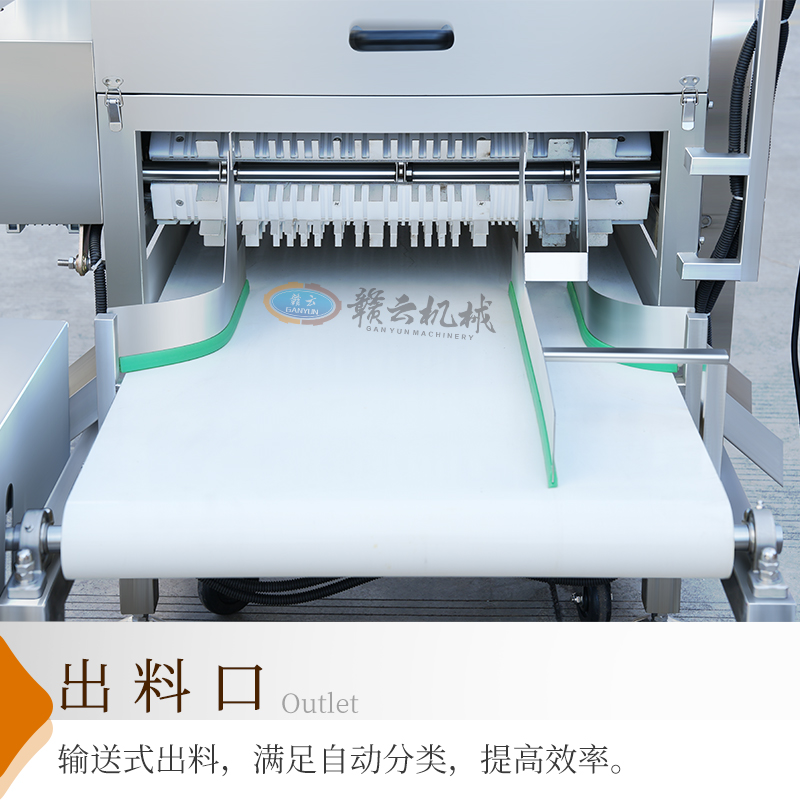 適用于鮮帶魚、微凍帶魚、秋刀魚、鱈魚、鲅魚、海帶、肉干、長條果蔬、鮮肉等長條物料快速切段。