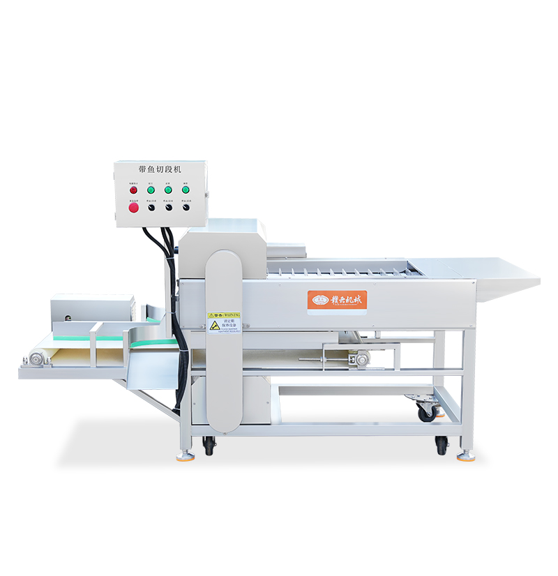 全自動帶魚切段機采用食品級不銹鋼制造,通過輸送式傳送帶魚,經過高速旋轉的圓形刀能快速高效精準地切割帶魚,設備結構緊湊堅固耐用,適用于鮮、微凍帶魚、秋刀魚、鴨脖、長條果蔬、山藥、鮮肉等多種長條物料切割,一機多用,切割效果好,切面平整,整體操作簡單,支持定制切割尺寸,滿足不同加工需求,是一款專業帶魚切段機設備。