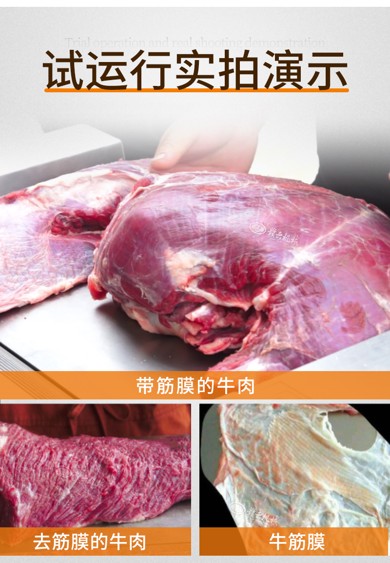高效去除豬肉、牛肉等肉類食材上的筋膜,適用于多種大小肉塊處理,去筋膜干凈,操作簡單易上手。