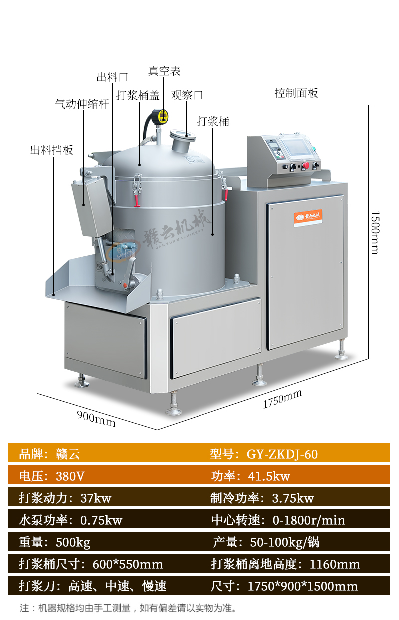 真空三速制冷打漿機