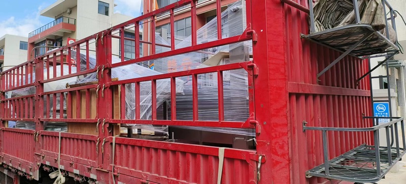 2023年5月27日,在贛云機械廠區內,叉車發出轟鳴聲,發貨部的師傅和叉車師傅正在熱火朝天的將小酥肉油炸生產線設備裝車,整條生產線將由專車發往湖北客戶。