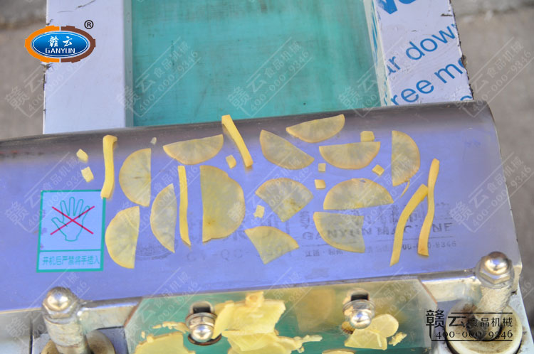 660型切菜機切腌制蘿卜片規格厚1.0-1.5mm,半弧形半徑約25mm,對于大蘿卜縱向四份開,小蘿卜縱向二分開(中間對半切開)然后放入切菜機中切出客戶想要的效果。