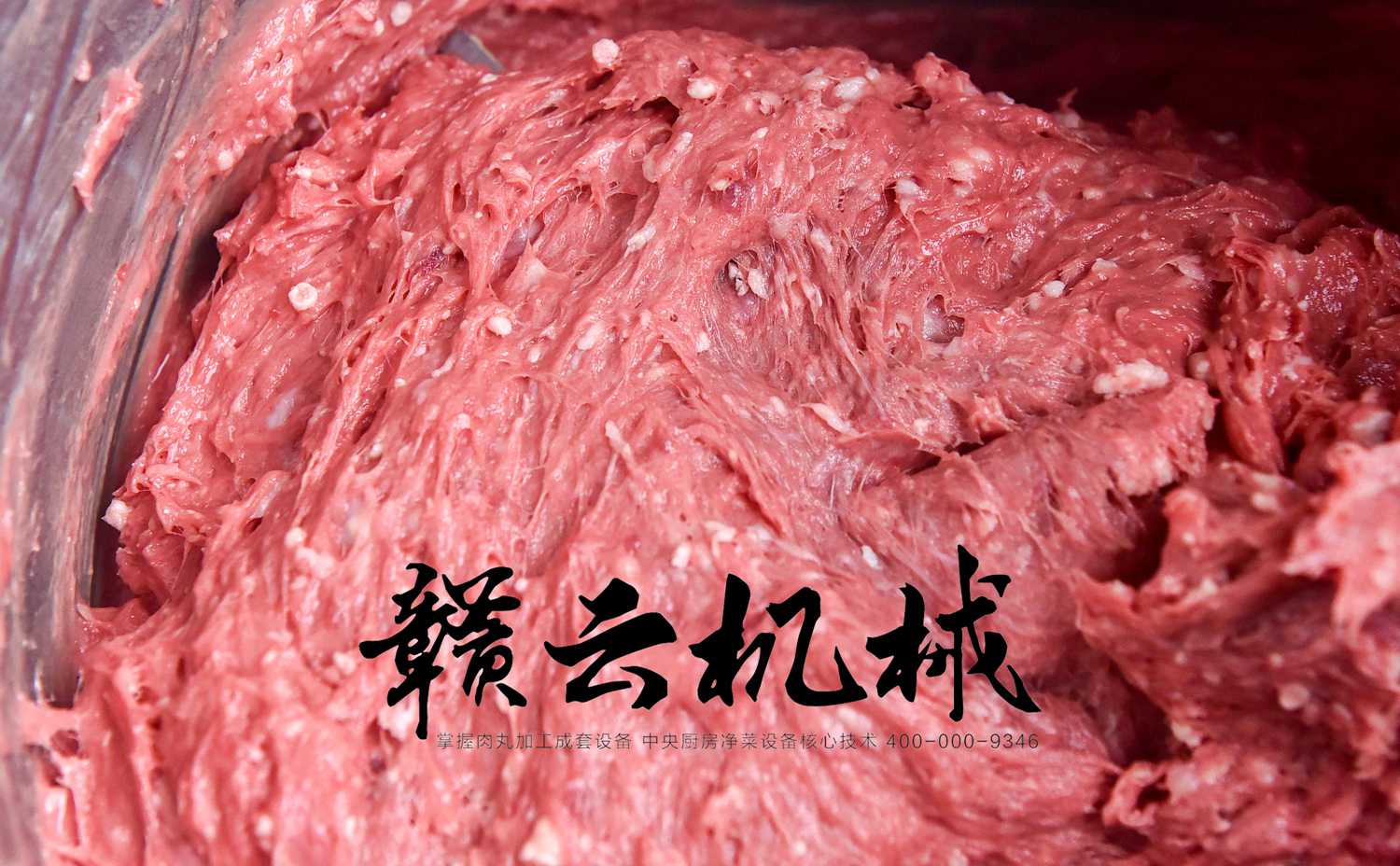 在把肉粒用打漿機制成牛肉將 過程中加入特制的調味料 打好的漿必須是拉絲狀
