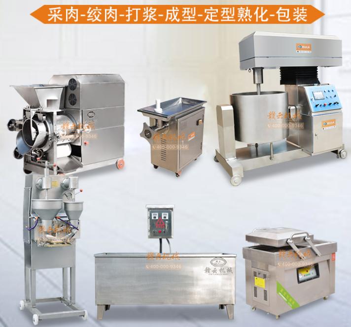 丸子加工的成套設備有:魚肉采肉機——立式不銹鋼絞肉機——350型液壓式打漿機——第三代肉丸包心機(實心丸子、包心丸子、貢丸機器、多功能丸子設備)——溫控雙加熱水槽——雙室真空包裝機。