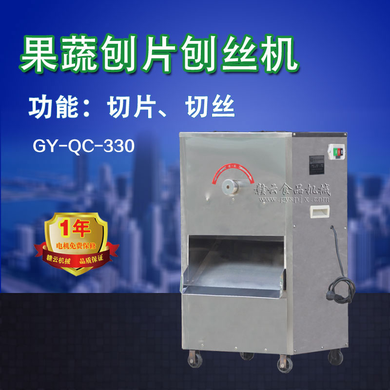 GY-330多功能切絲切片機吸收內外多種機型之長,精心研制改造,通過簡化所有傳動機構及傳動速度,使機型壓縮,而功率不變。本機的主要結構是由圓盤上裝有兩片切片(切絲/切片)在點擊帶動圓盤使切片旋轉而達到切絲切片的目的。