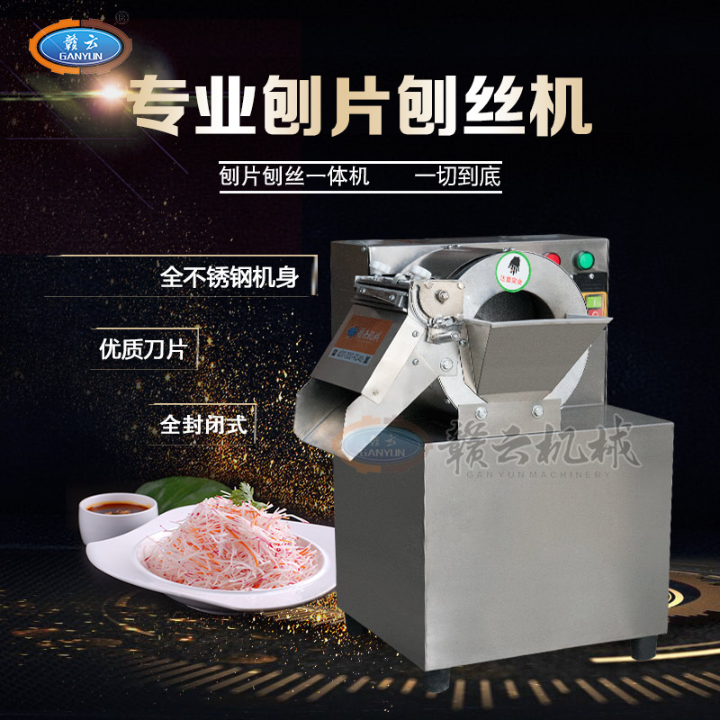 贛云牌145型刨片刨絲機,可用于土豆、蘿卜、胡蘿卜、茄子、黃瓜等刨片或刨絲,還能切顆粒,整機外殼采用不銹鋼材質,小巧精致,刨片厚度可調范圍1-10mm,配有固定切絲刀3mm和5mm規格。特別適用于學校食堂,果蔬加工廠,礦場、部隊等大型食堂加工之用。