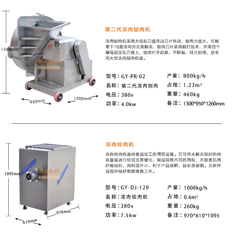 贛云推出的新款火鍋丸子成套設備由凍肉刨肉機、凍肉絞肉機、350型液壓打漿機、火鍋丸子成型機組、雙槽電加熱溫控水槽和雙室真空包裝機組合而成,日產可達3噸以上。
