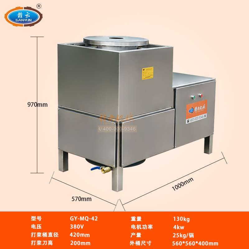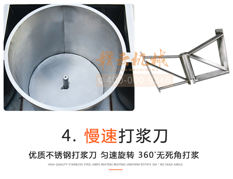 中大型魚丸打漿機采用全不銹鋼材質,有效的保護了電動機,操作上更安全,制作魚丸更衛生,42型慢速肉丸打漿機可一次加工50斤左右魚漿,是中型魚丸,牛肉丸加工首先選慢速拍打設備之一,贛云歷經十年品質,為您加工魚丸,牛肉丸等設備保駕護航。