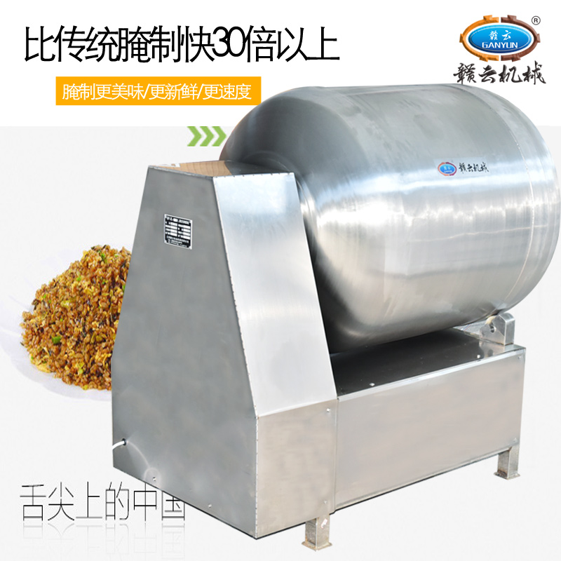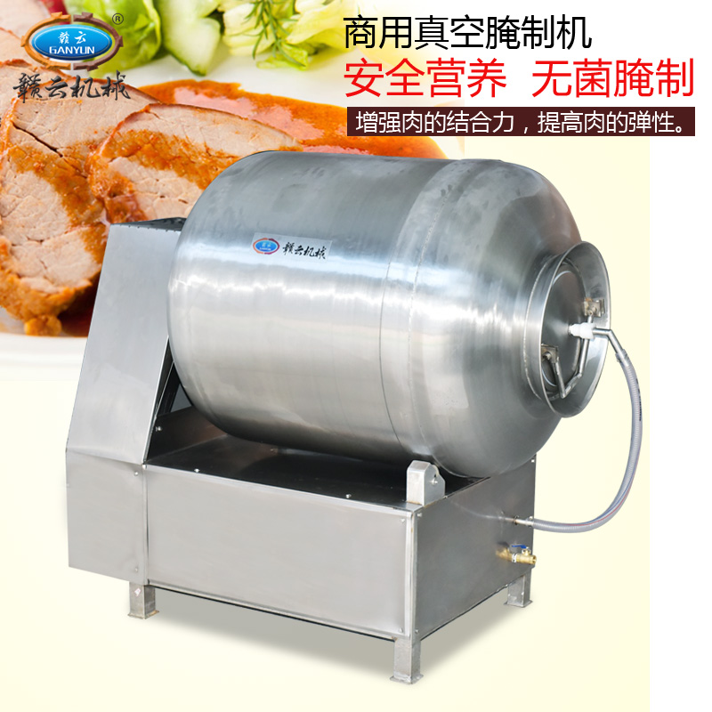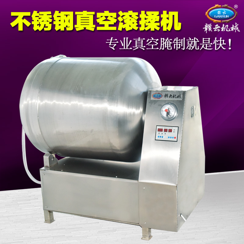 滾揉機除了能加速腌效果外,采用滾揉技術達到肉質嫩化效果的也是西式火腿加工的重要工序,然肉質在常規的滾揉機械加工過程中常常會因為摩擦滾揉升溫而容易導致肉質變質,因此滾揉的時間需要控制的十分好。贛云真空滾揉機是為了彌補常規型滾揉機的缺點而進行科學的設計,真空狀態下可以很好的保證肉質的質量,在經過微電腦控制滾揉時間,使得整個滾揉工藝變得簡單化和可快速復制性。