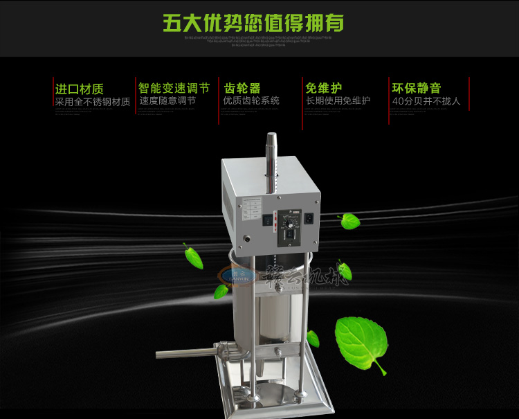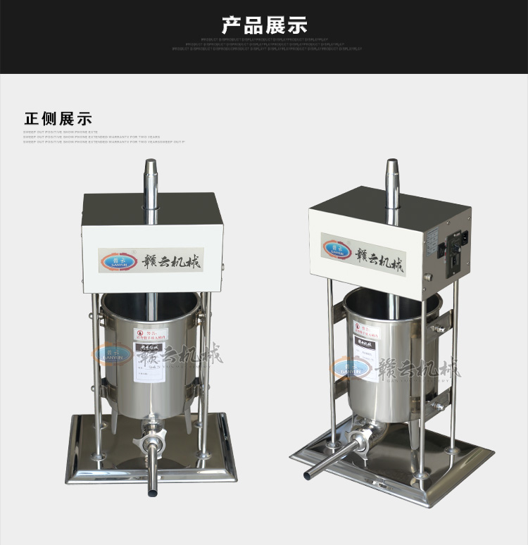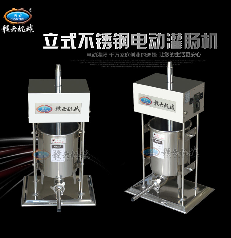 冬季灌腸新添專業灌腸設備,贛云牌立式不銹鋼電動灌腸機,專業灌制各種腸類,如臘腸、香腸、火腿腸、親親腸。變頻速度可調,灌腸讓你隨心所欲,整機采用全齒輪優質拉桿升降系統設計.腳踏開關隨意控制,配合自動升降系統及變速可調,灌腸速度快,效果好。