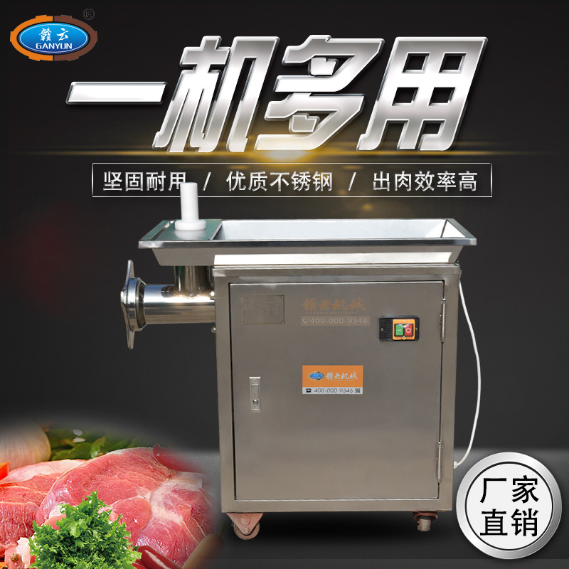 贛云牌32型不銹鋼立式絞肉機,防水開關,二級減速,齒輪鏈條傳動,接觸食品部位全部不銹鋼材質,配6mm、8mm刀網,兩個十字刀,并配實心推料棒!絞肉就是不一樣。