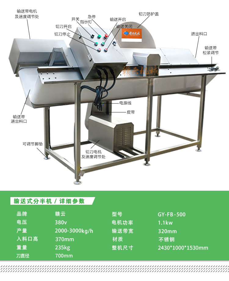 主頁-> 果蔬加工機械->凈菜加工設備->輸送式分半機