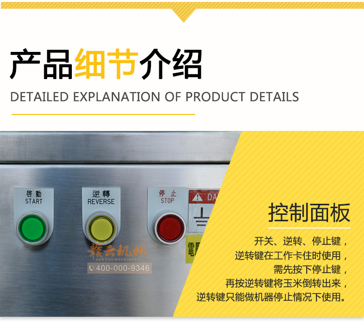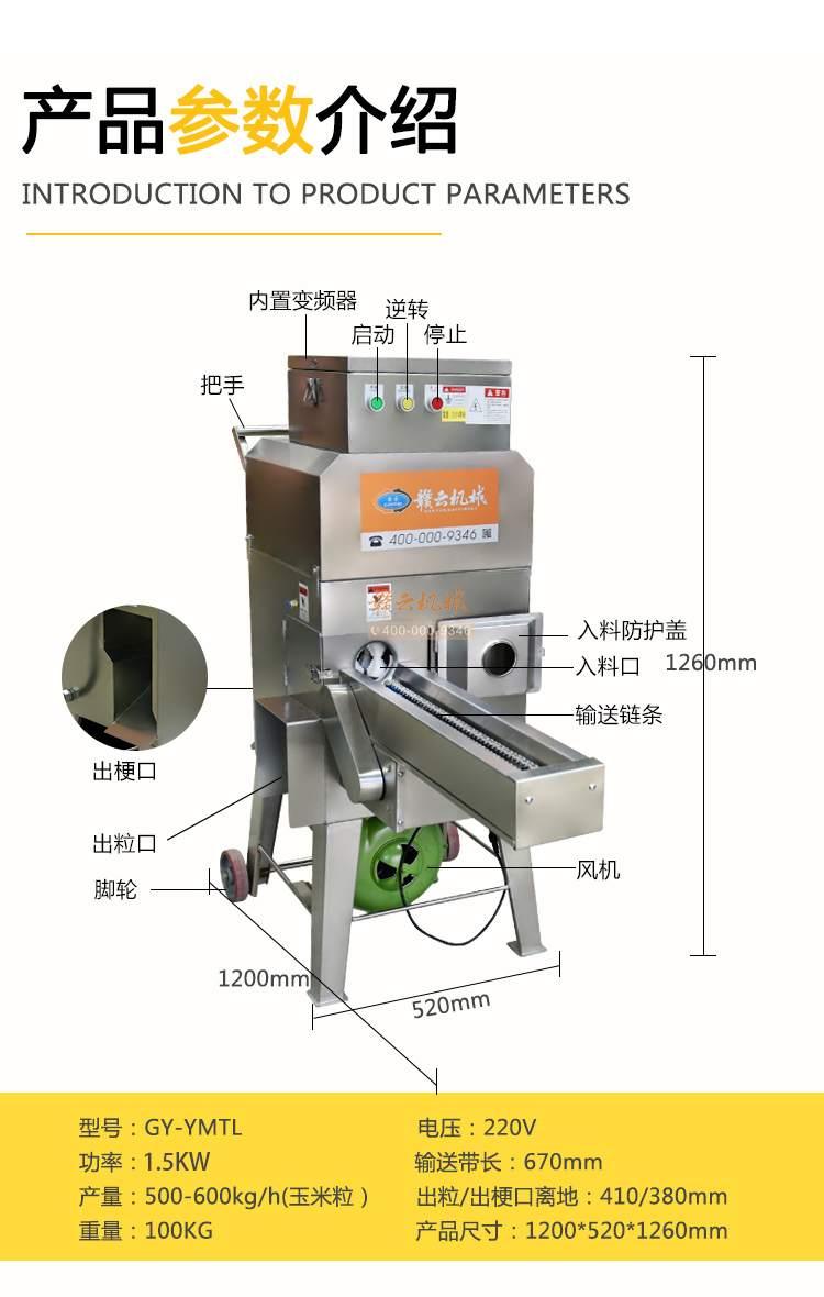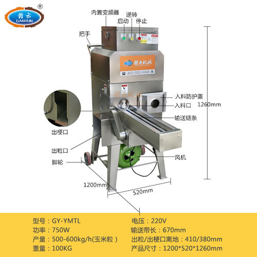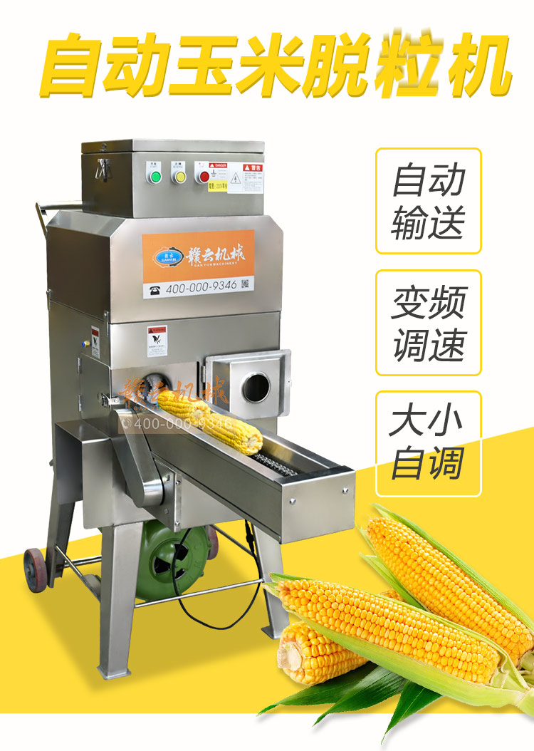 設計合理——整機采用全不銹鋼制造,配合腳輪移動方便;變頻器控速、操作簡單;適合各種鮮、甜、糯玉米、凍玉米解凍后脫粒;