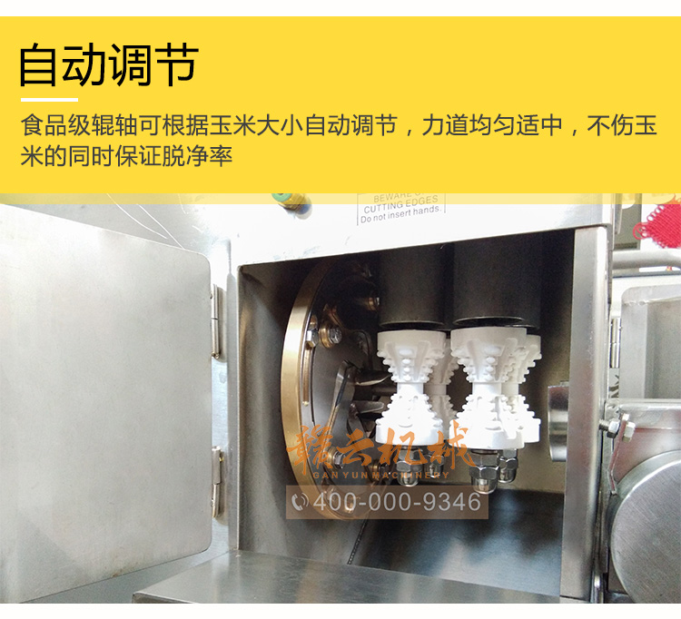 脫凈率高——可根據玉米棒大小自動調節,適合各種大小玉米的脫粒,脫產率高、脫粒深淺可調,甜玉米剝凈率可達100%,是甜玉米脫粒產業的產品。