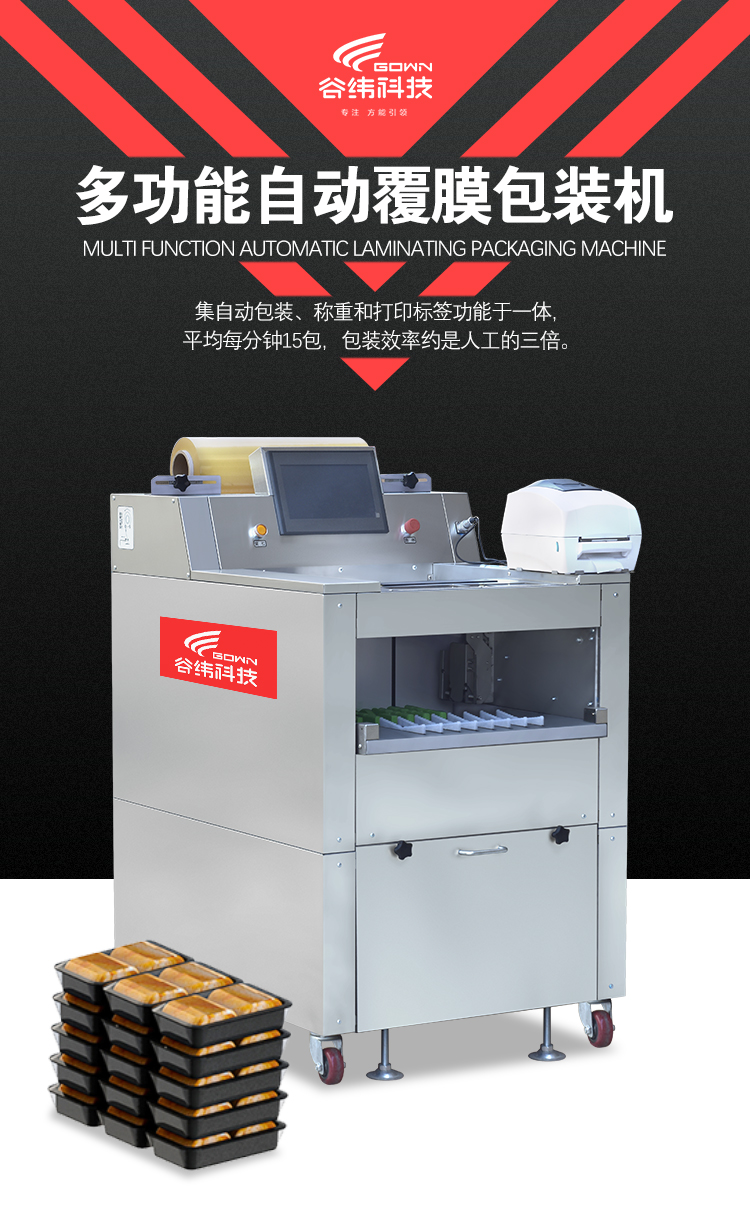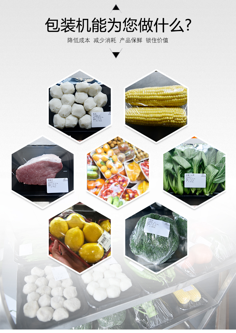 保鮮膜拉伸功能,可減少保鮮膜的褶皺并增加表面的透明度。使商品看起來新鮮誘人,即可減少保鮮膜使用,又可節省其使用成本。