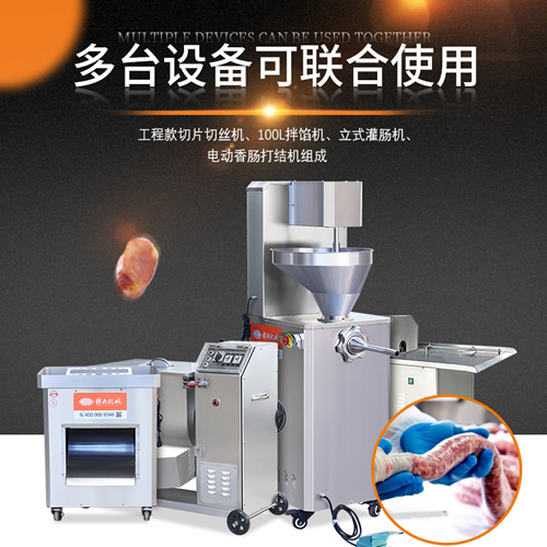 贛云牌立式全自動灌腸機,根據多次的機器實地使用和存在不足之處反復改造后的全新配置升級,采用不銹鋼機身,機頭使用可拆卸,方便機器清洗,速度平衡穩定,不銹鋼機身,腳踏控制灌腸,大功率電機,無論是四川香腸、湖南臘腸、脆皮腸、山東香腸、廣式臘腸還是河南臘腸都適用,一機多用,設備滿足多重風味香腸制作,新升級的機器加寬加大入料口,讓您進料順暢不卡料,灌腸機可以與多臺設備聯合使用,可與切片切絲機,拌餡機,灌腸機,香腸打結機組成,提高您的生產效率。