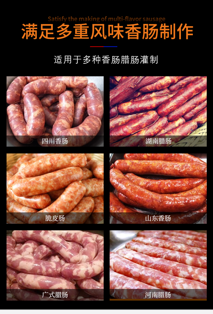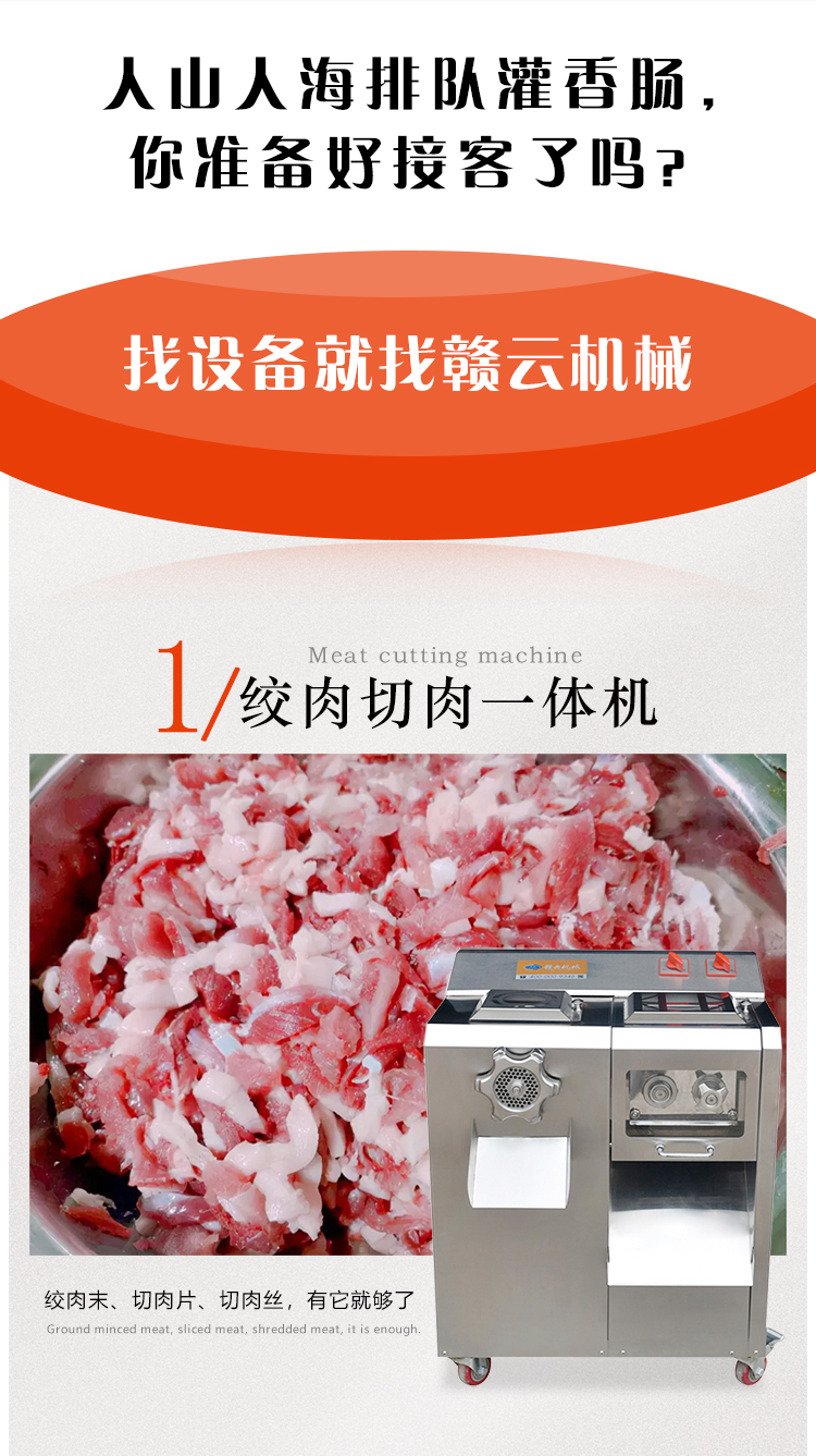 贛云機械專業從事肉類加工設備,灌香腸機械的研發和生產,專用于灌香腸的產品有香腸設備,火腿腸設備,成套香腸設備,整套香腸設備,灌腸加工設備,灌腸扎線機器等,這套設備滿足多種類型的香腸臘腸灌制