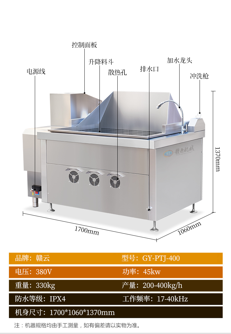 主頁-> 中央廚房設備->熱調理區設備->400L方形自動漂燙機/焯水/油炸機