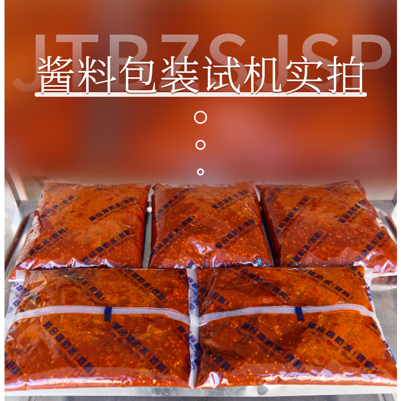 自動醬料包裝機整體結構設計合理,精度高。廣泛應用于酒水飲料、果醬、蜂蜜、果汁、湯汁、火鍋料及火鍋底料、花生醬、番茄醬、豆瓣醬、辣椒醬、牛肉醬、豆豉、牛奶等具有流動性的液體類的袋包裝設備。