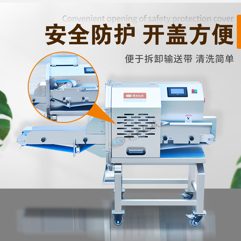 熟肉切片機采用食品級不銹鋼材質,加裝擋板防護裝置,提高設備衛生和安全性。設備通過模擬手工切片的原理,通過輸送帶和切刀將熟肉快速精確的切片,調節輸送帶速度達到調整切片厚度,設備操作簡單,通過使用自動化切熟肉片,降低人工成本。這款高效實用的熟肉切片機廣泛用于食品廠、餐廳、食堂等地。