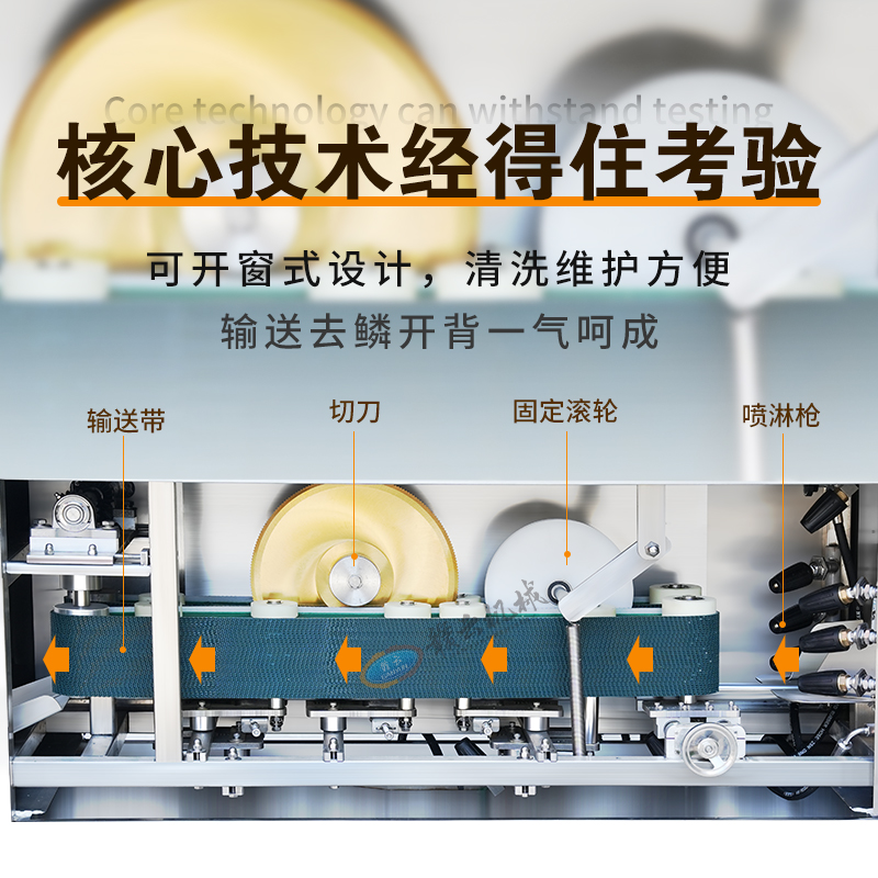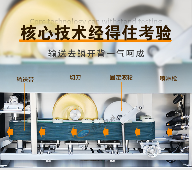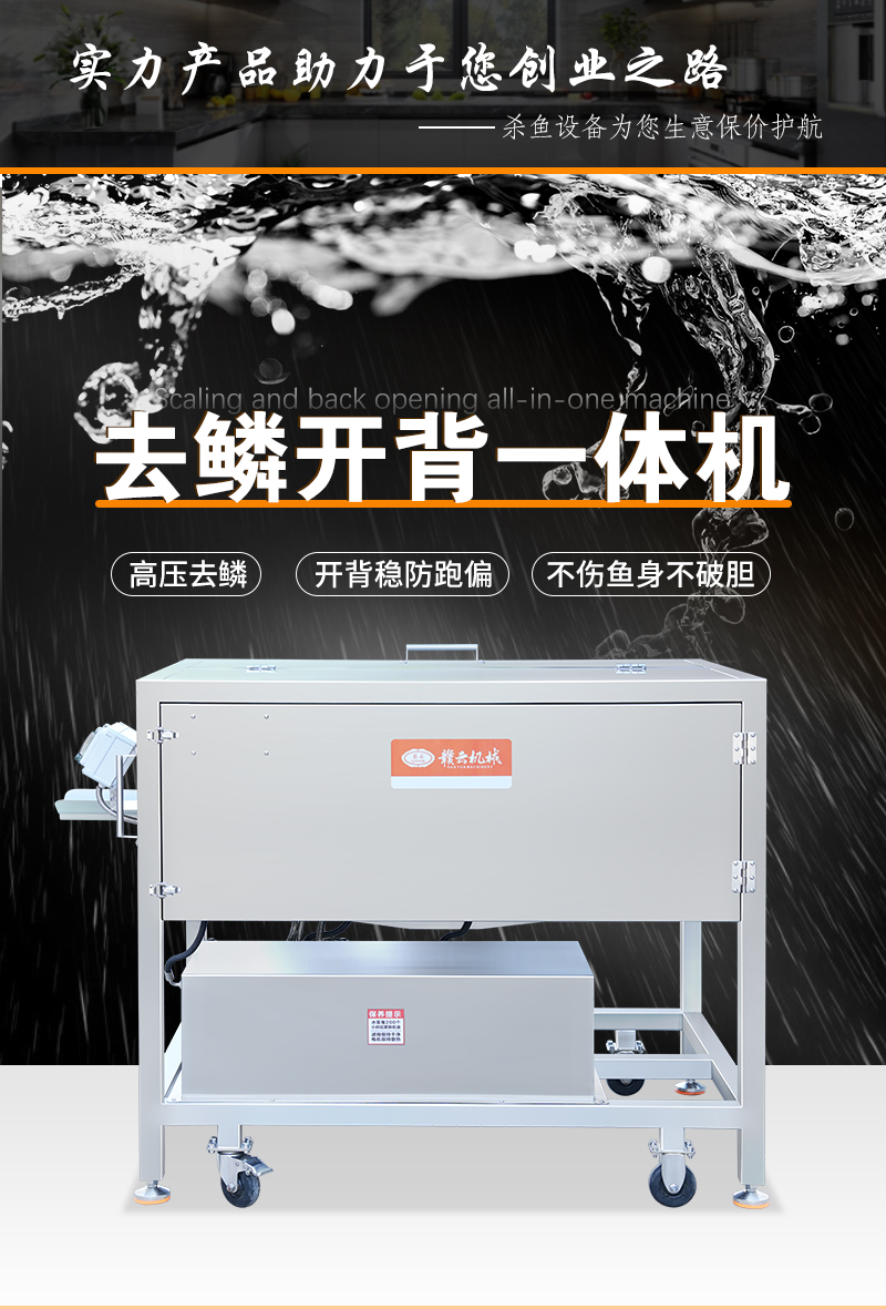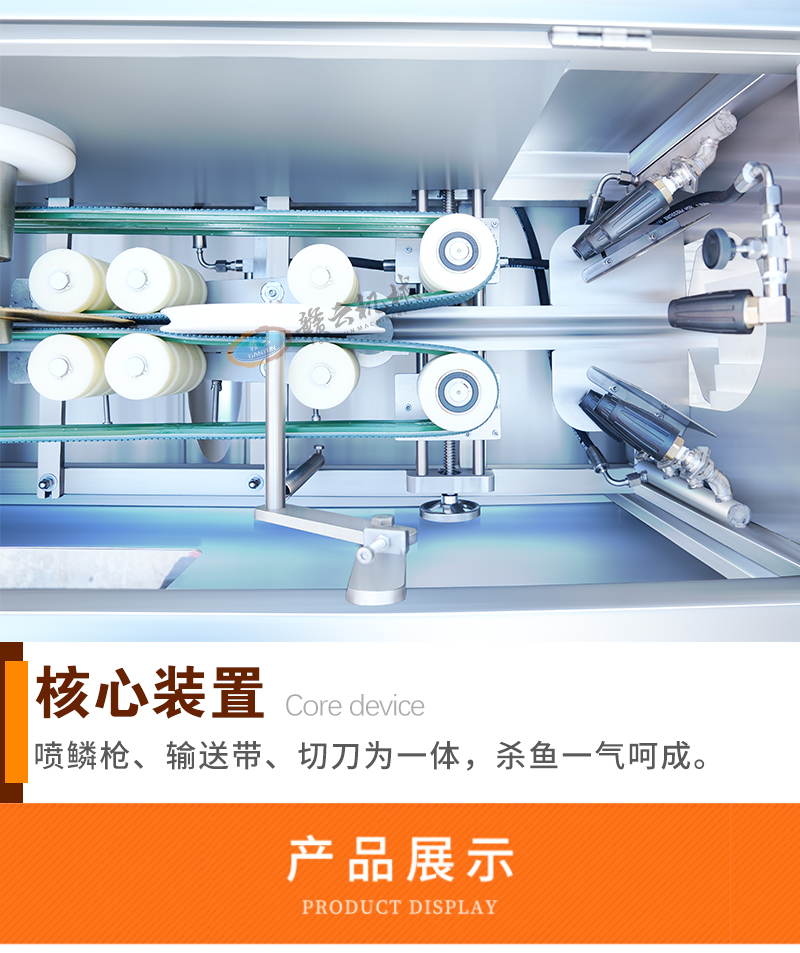 通過高壓去除魚鱗,同時能對魚進行開背處理, 不傷魚皮不破魚膽。