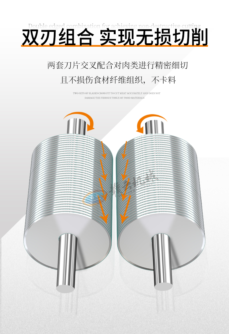 適用于鮮豬肉、牛肉、羊肉、魚肉、雞胸肉等各種肉類的切片、切絲、切末,也可以切軟蔬菜,如:榨菜、魔芋、香菇、辣椒等切片切絲切末。