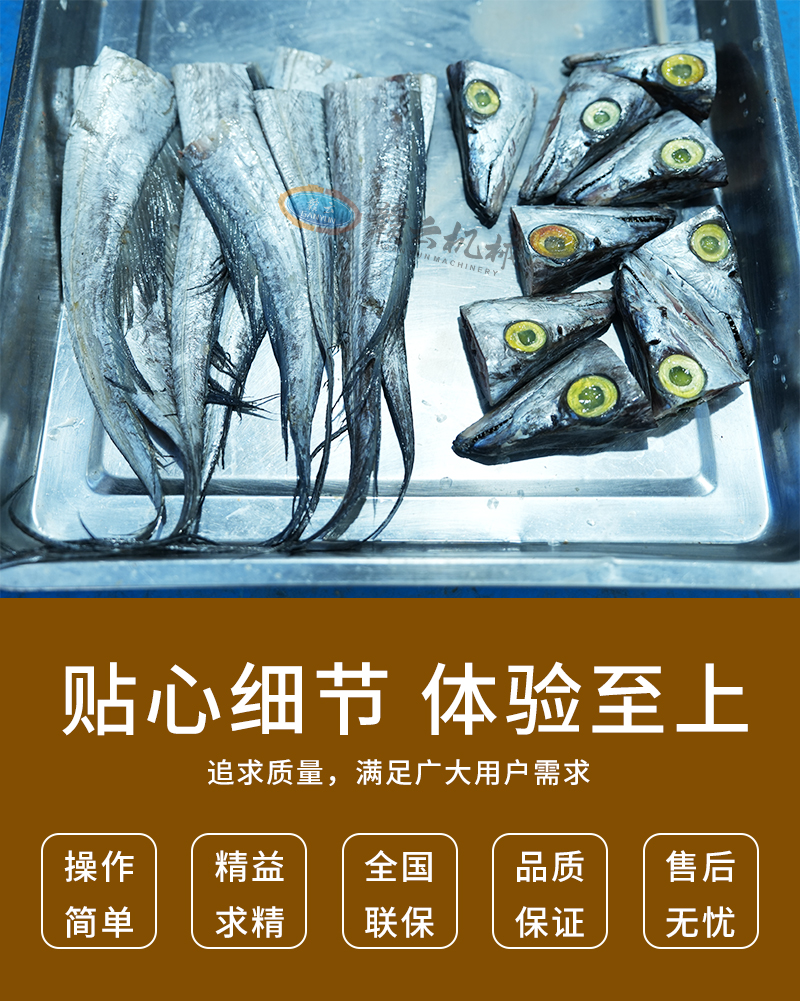 適用于鮮帶魚、微凍帶魚、秋刀魚、鱈魚、鲅魚、海帶、肉干、長條果蔬、鮮肉等長條物料快速切段。