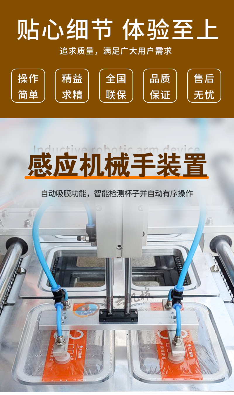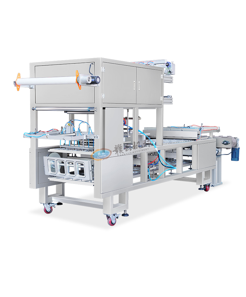 專為預制菜、快餐盒飯、鮮食、小吃等設計,實現全自動放盒、封口、切膜,支持異形包裝定制,提升鎖鮮效率與美觀度。