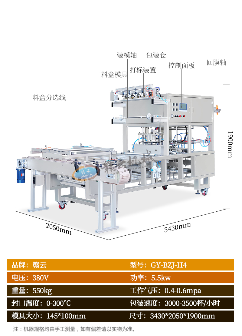 重 量: 550kg 體 積: 3430*2050*1900 mm