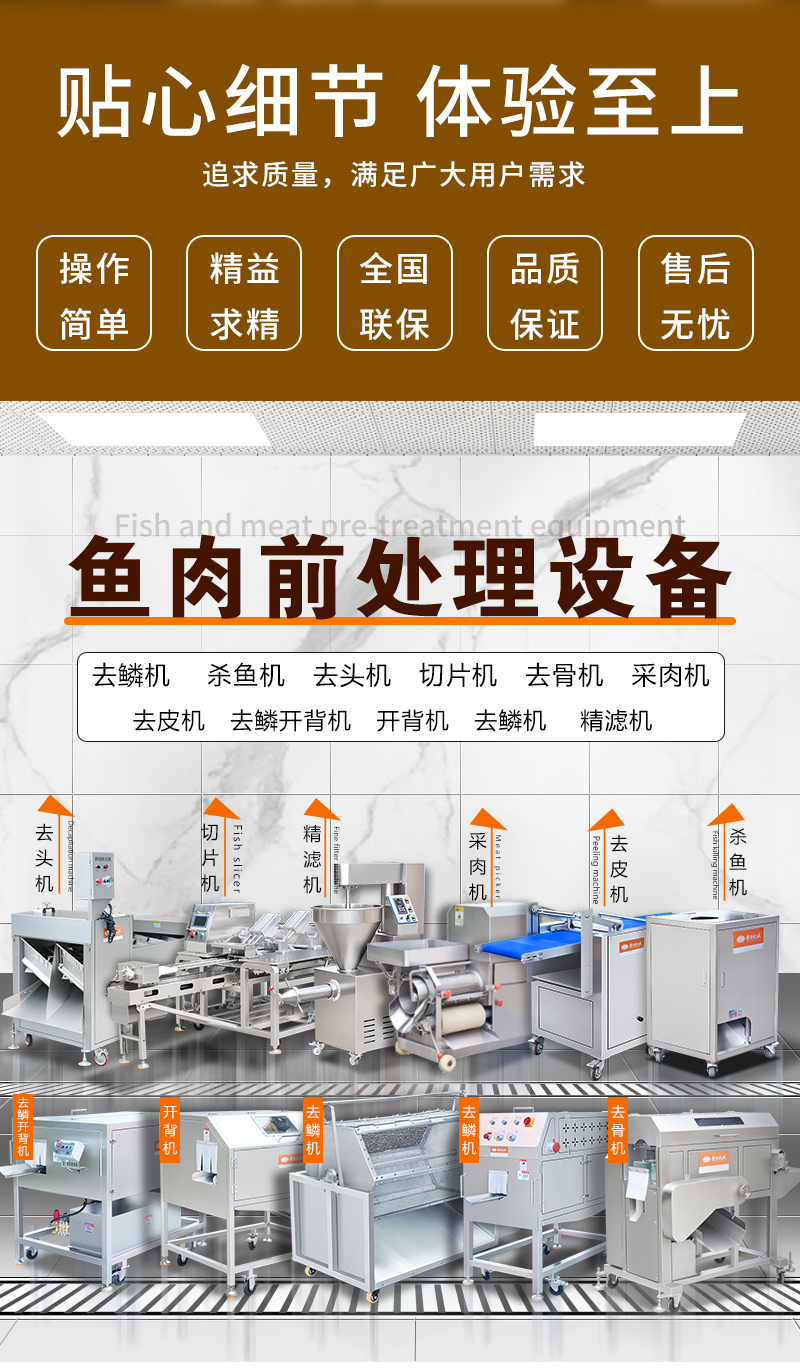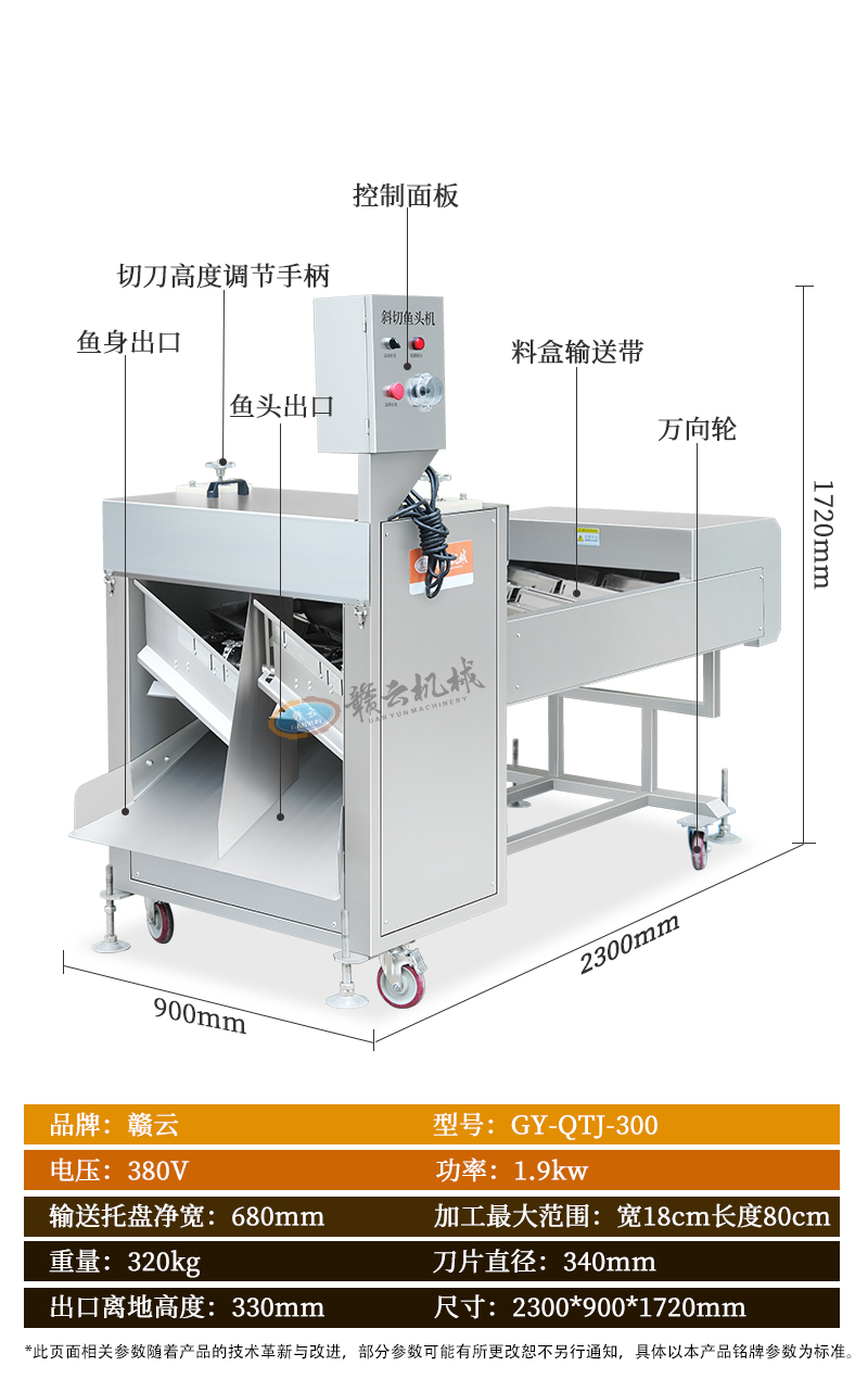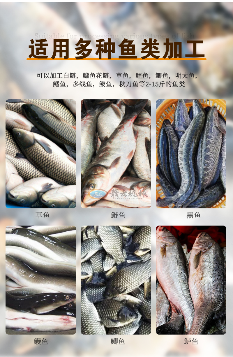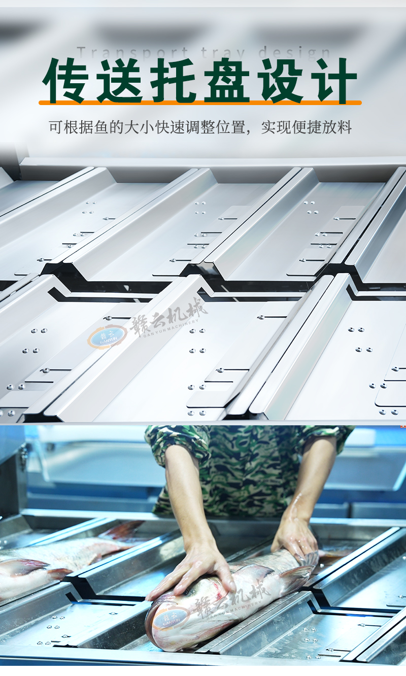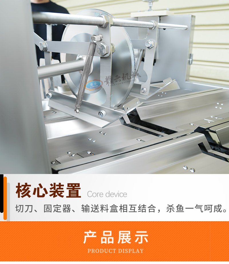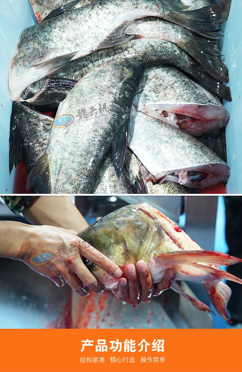 用于魚類加工中自動完成魚頭切割與分割,支持直切/斜切定制,適用于水產加工廠、大型餐飲、食品加工企業批量處理多種魚類。